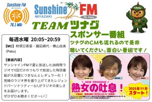 チームツナグの提供番組放送中!サンシャインFM宮崎(76.1MHz)
